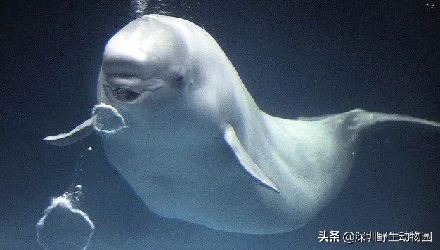 白鲸长约4米,长着一张肥嘟嘟的娃娃脸,额头鼓起的“富贵包”跟寿星老爷似的,可可爱爱,真是不赖。