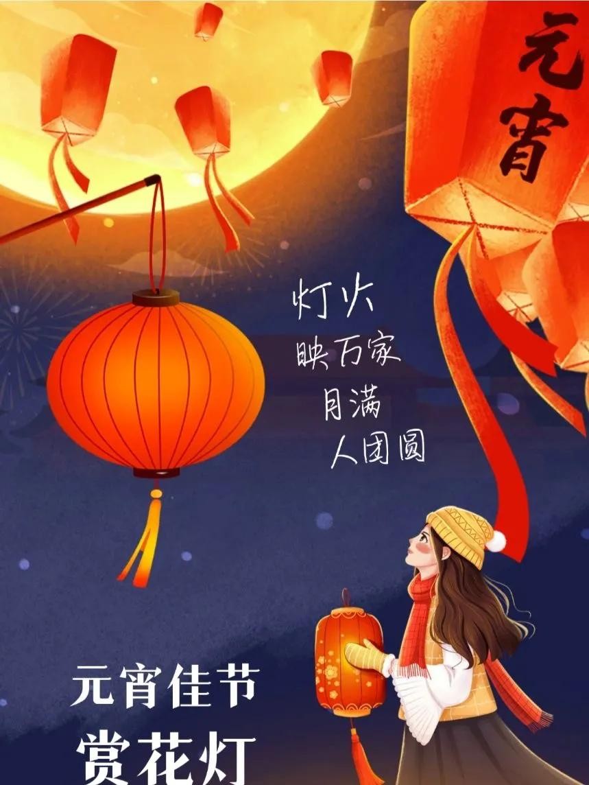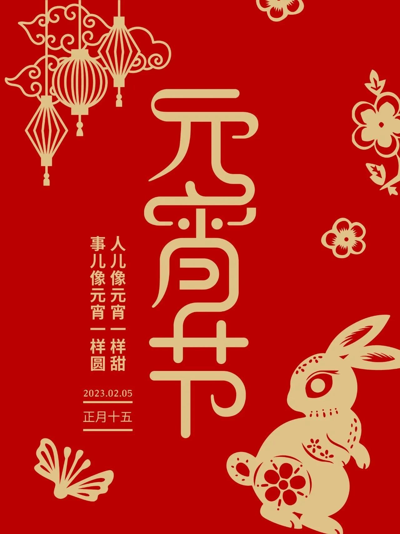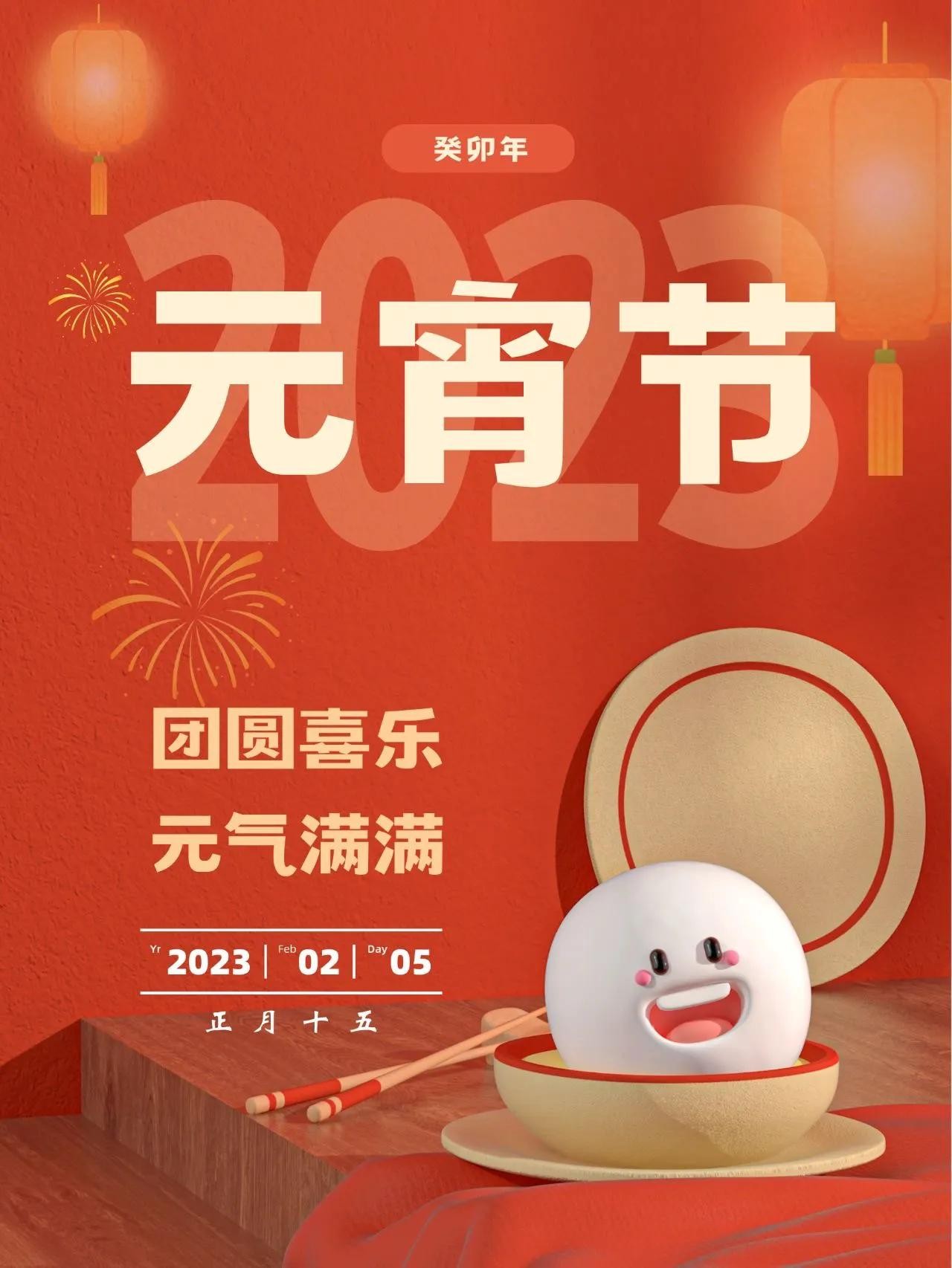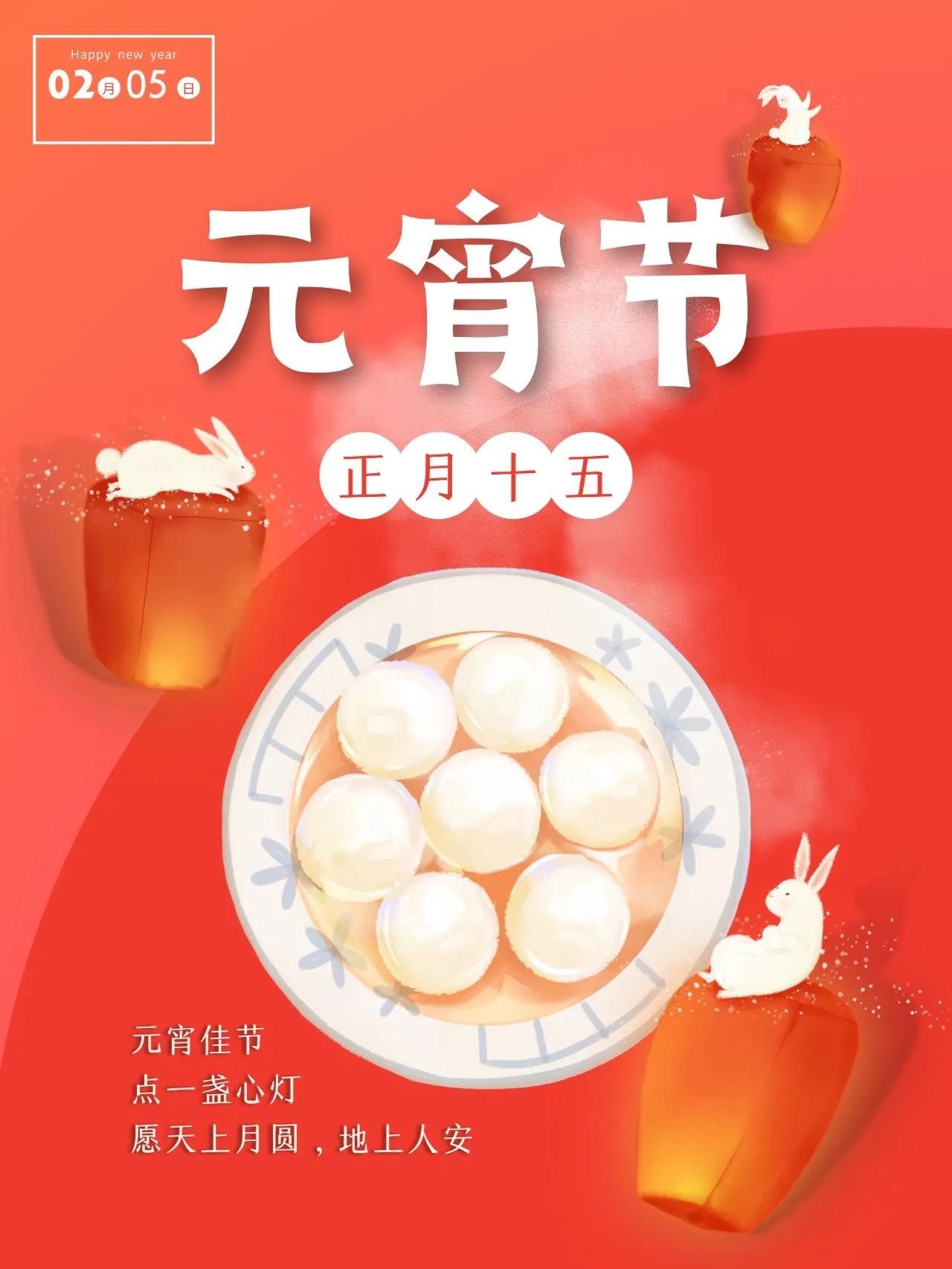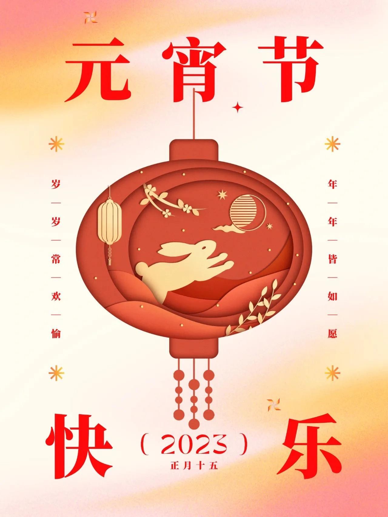 2023正月十五早上好祝福语图片,兔年大年十五元宵节精美壁纸