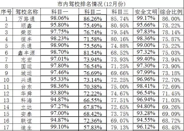在这个冬天,有多少人像小编一样在冷冷寒风中颤抖着学车?那么,青岛各驾校的通过率如何?近日,青岛全市2015年12月份各驾校合格率排名发布,希望可以给你一点提示。