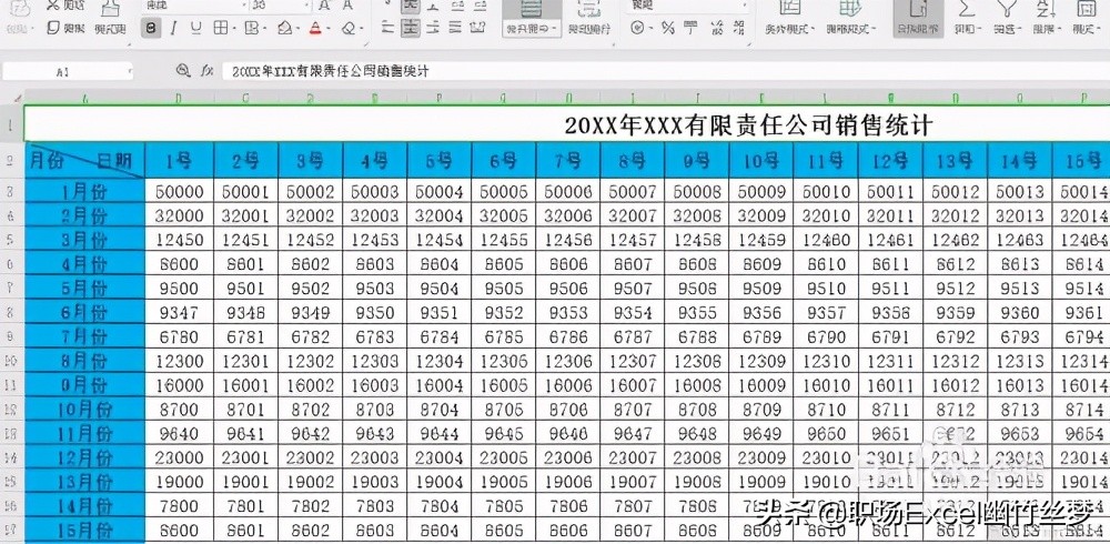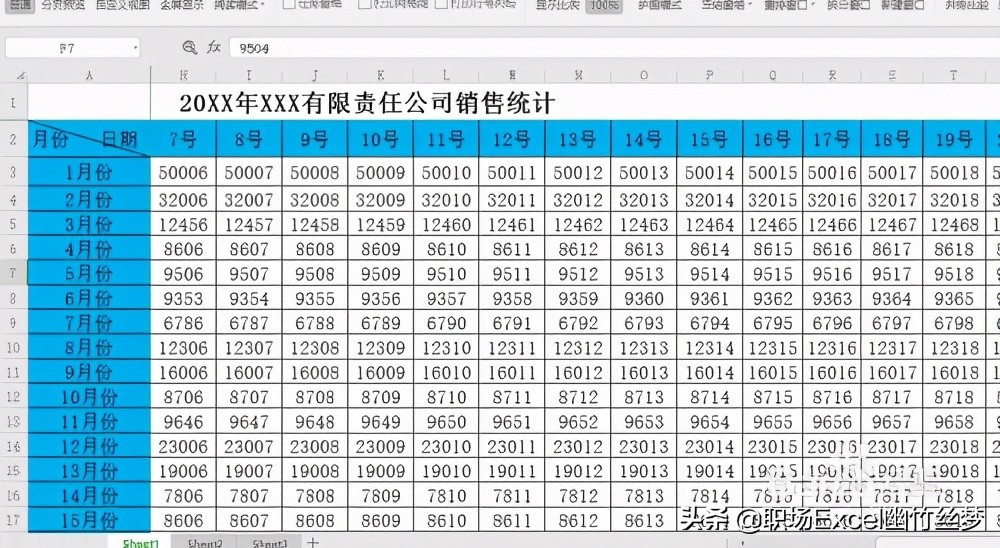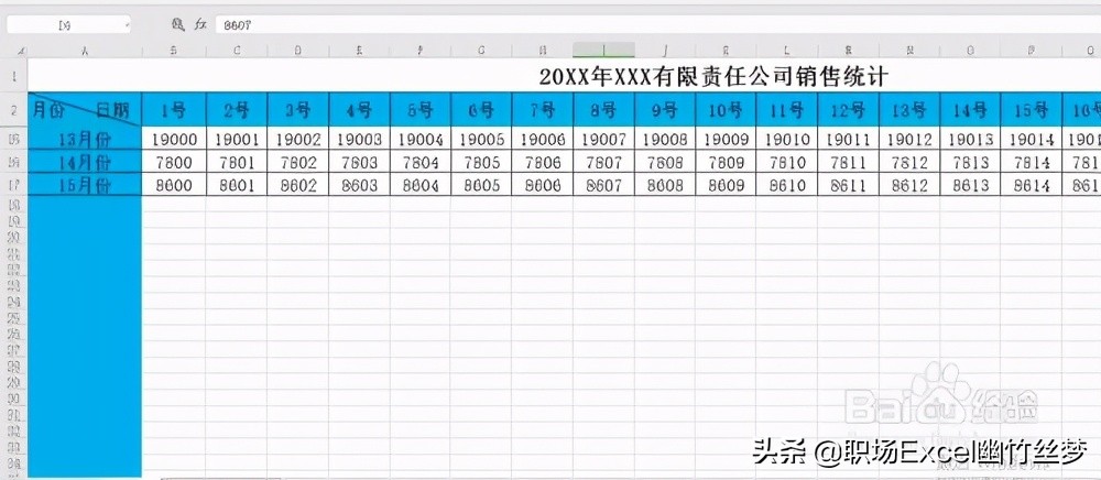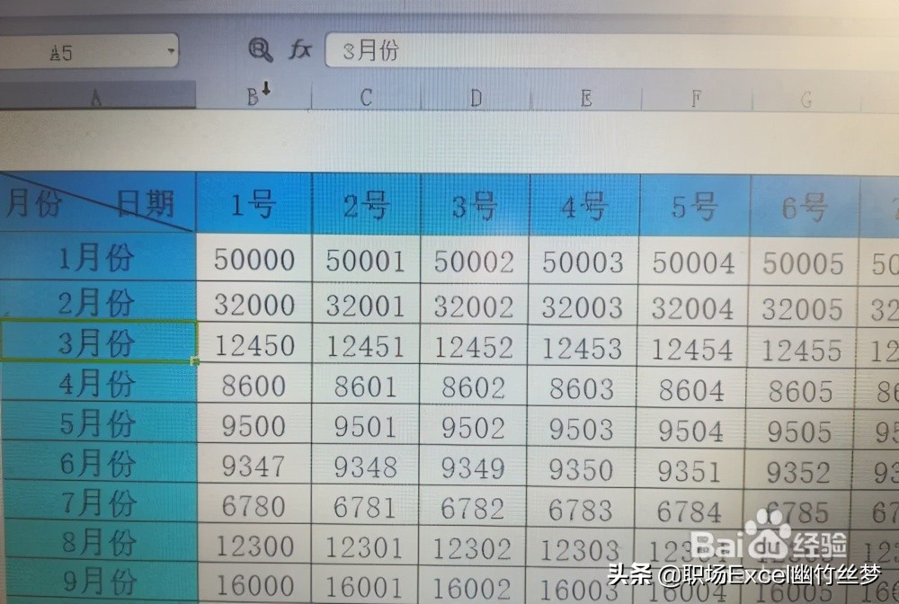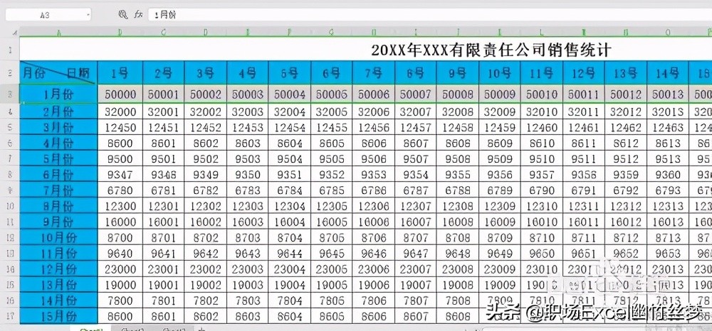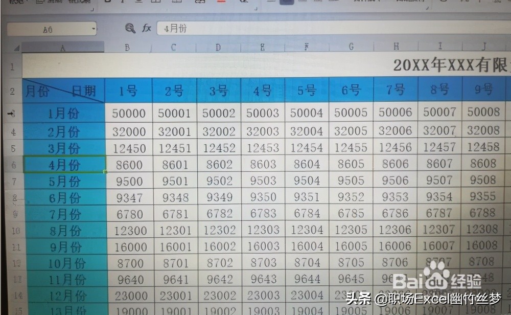 打开含有首行表头和首列表头的数据表,如图所示:行表头是日期,列表头是月份。