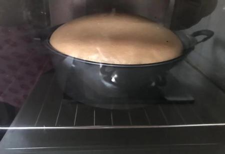 将混好的面糊倒入蛋糕模具中!震动几下把气泡震出!烤箱提前预热!180度烤50分钟即可!