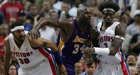 的确,巅峰期的奥尼尔,你找不到能一对一防得住他的人,几乎都是二个一起上,印象最深的便是F4时期对阵底特律活塞队,活塞硬是一起用本华莱士和拉希德华莱士才防住这头怪兽的,你想想这两位华莱士都是什么力量级别!