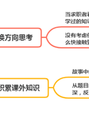 首先要说的正确,自然就是换方向思考。故事中,当求职者看到问题的时候,只顾着再加在脑海中思考学过的知识,没有考虑使用其他的方法进行解答,自然没有那么快接触到正确的答案。