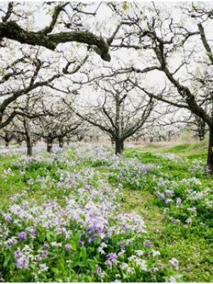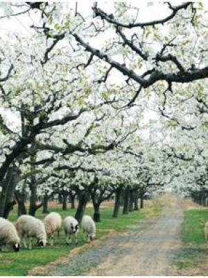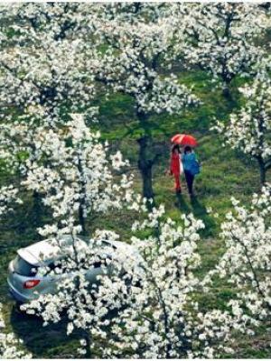 砀山栽种的梨树属白梨品种,连沿途也种满了梨树,枝头层层叠叠开满了纯白的梨花,洁如玉、白如雪,密密匝匝挤在一处。风吹梨花落,好似唯美浪漫的童话世界。