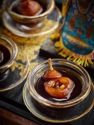 【新鲜去皮的砀山酥梨挖空内心作为“盏”身,“盏”中放入野米、藜麦、芡实等原料,锅中加入山泉水,再加入老冰糖、话梅、枸杞、红枣、川贝是什么等文火慢炖。】