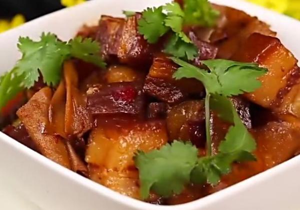 红烧肉,每家每户都会做,而且人人都喜欢吃。 但是每个人做的方法都不同。有的炒糖色,有的用红曲,有的要加茴香桂皮等香料。今天小编教大家做的是笋衣红烧肉,不需要过多的调味和香料,吃起来有些辣味,非常适合喜欢吃辣的小伙伴,这道红烧肉慢慢熬煮就可以了,原汁原味,肉香自然来。上色主要靠老抽和生抽的配比。 红烧肉是上海著名的一道本帮菜,充分体现了本帮菜“浓用赤酱”的特点。