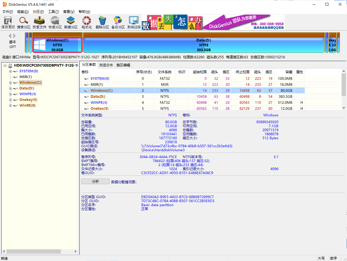 (2)还有一款软件叫傲梅分区助手,我没用过那一款软件。但是执行过程大致和DiskGenius一样。反正不管是哪一款软件,最好在开始划区前都将数据备个份,毕竟电脑存着很多重要的东西,数据无价,提前将数据备个份有备无患嘛!!!