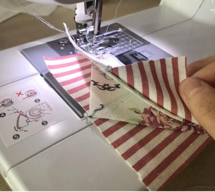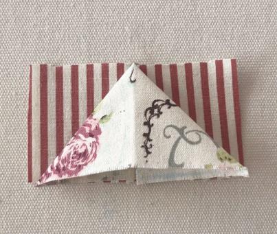 2.将10*5cm面料对折,然后按图片一样叠放在一起