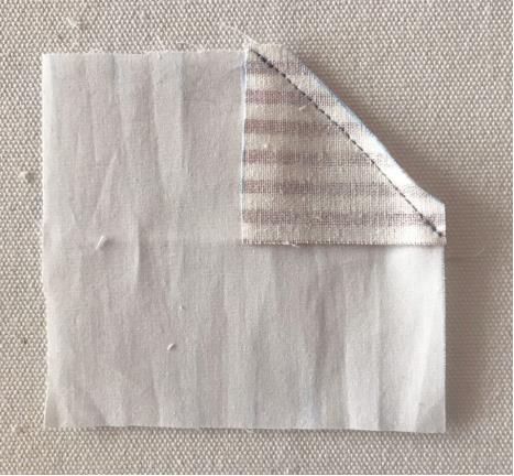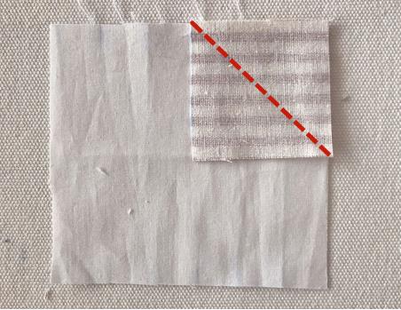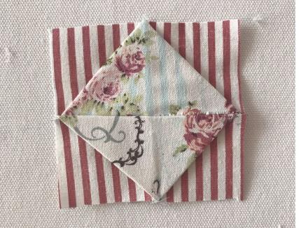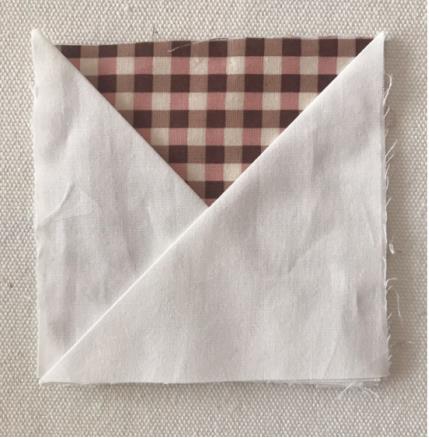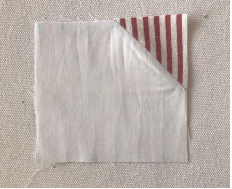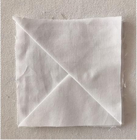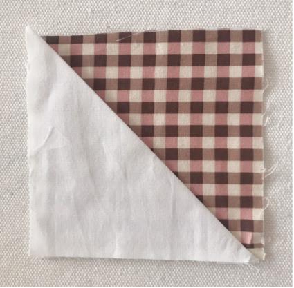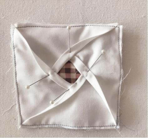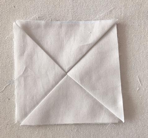 1.准备面料,五块10*10cm面料,将四块面料对角线折叠,如图放置