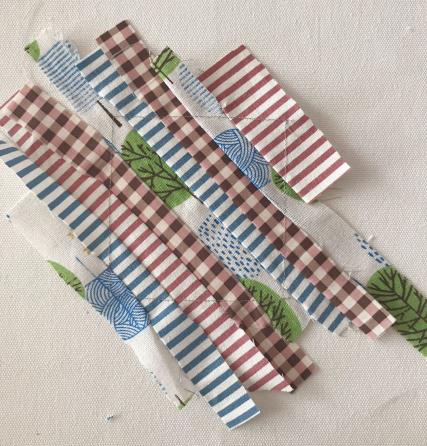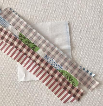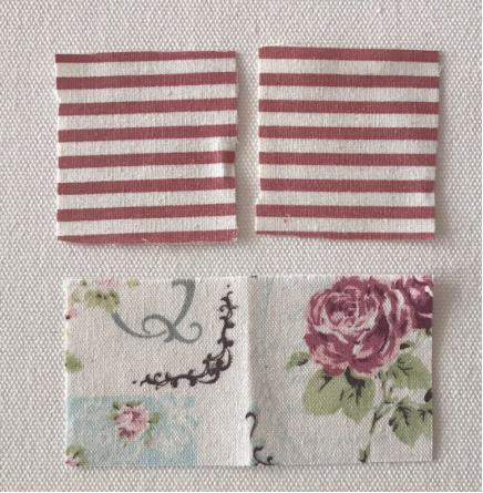 1.准备好看的碎布头,两块5*5cm正方形,一块10*5cm长方形,左右适当放一些缝份