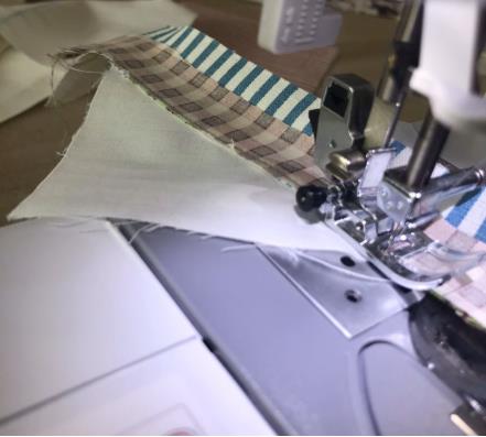4.两块重叠,缝合一边,熨烫平整就完成了