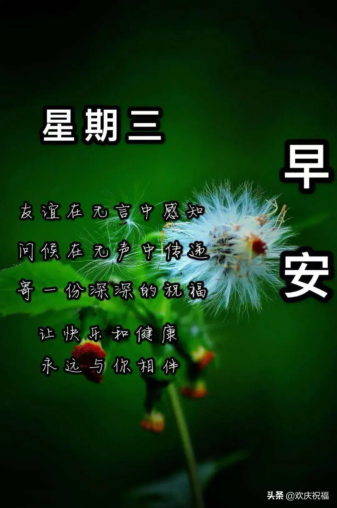 蜜蜂嗡嗡叫,好运时缠绕。青蛙池中舞,忧愁全消无。百花红正艳,快乐常相伴。荷塘月色秀,财运永不休。天空风筝飘,心情无限妙。柳絮满天飞,浪漫又陶醉。铃音及时到,问声早上好。快快快起床,今天真美好!