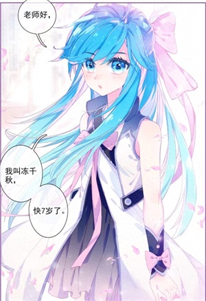 冻千秋现在是人类七岁小孩的样子,一副美人胚子的样子,可以看出未来一定是个大美人,到时候蓝轩宇就有福了。