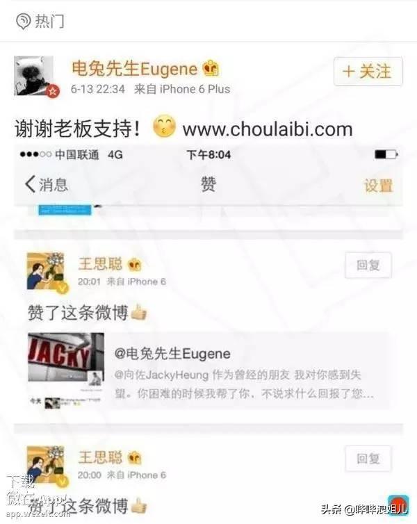 虽然王思聪不敢站队,却默默地在这条微博下点了赞