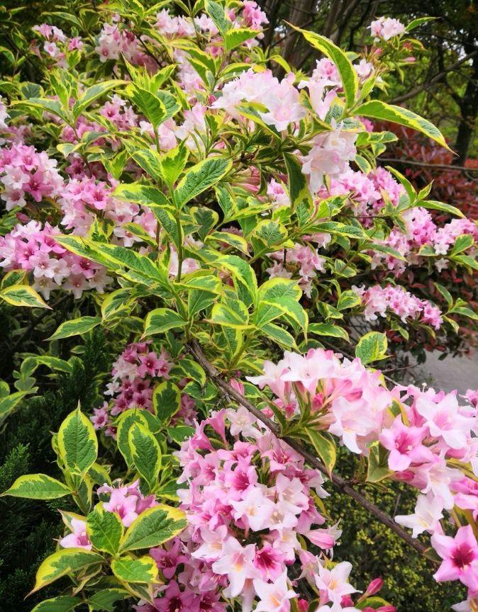 总结:锦带花品种很多(花叶锦带只是其中之一)是北方常见的观赏花木,花期刚好是其他植物春花凋零、夏花不多的时候,很好的弥补了花园无花可赏的空缺,而且它们抗病虫害能力强,不生病、不招虫,低养护成本,平时观叶,花期赏花,还是很值得拥有的。