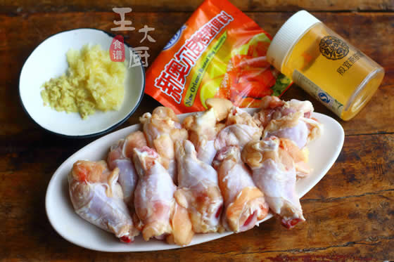 准备食材:奥尔良烤翅调料、蒜末、姜末、翅根、蜂蜜等。