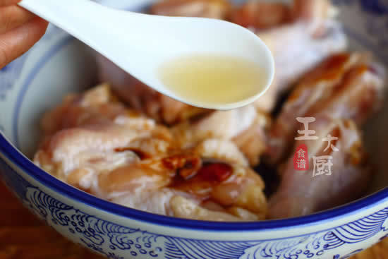 4、准备适当的料酒在鸡翅根中,用来除腥。