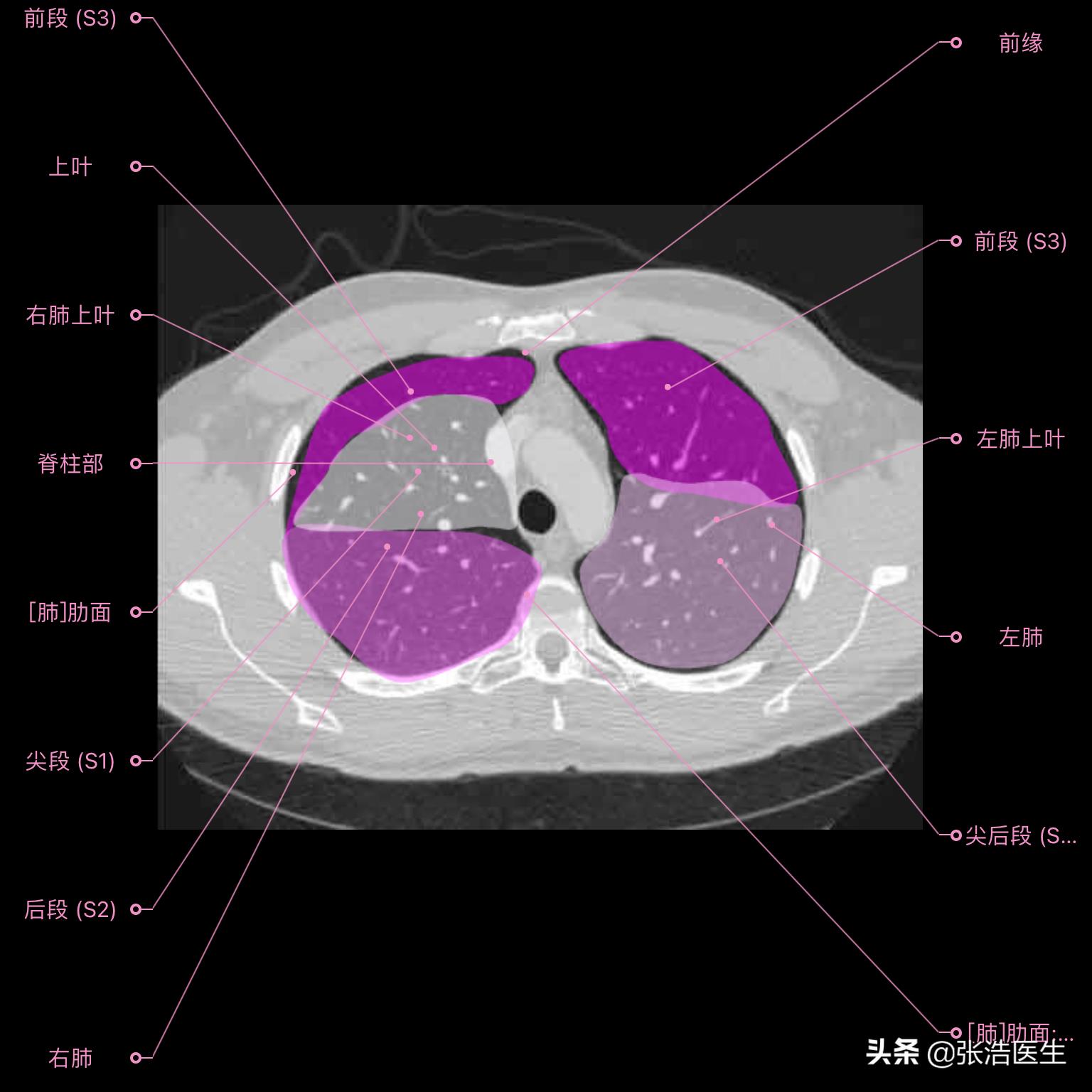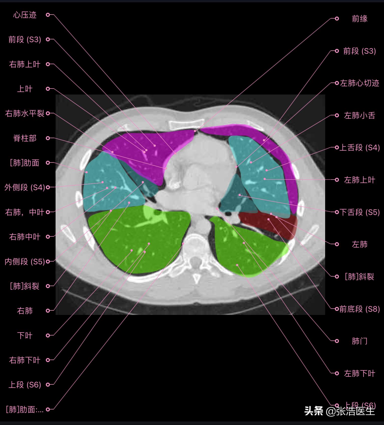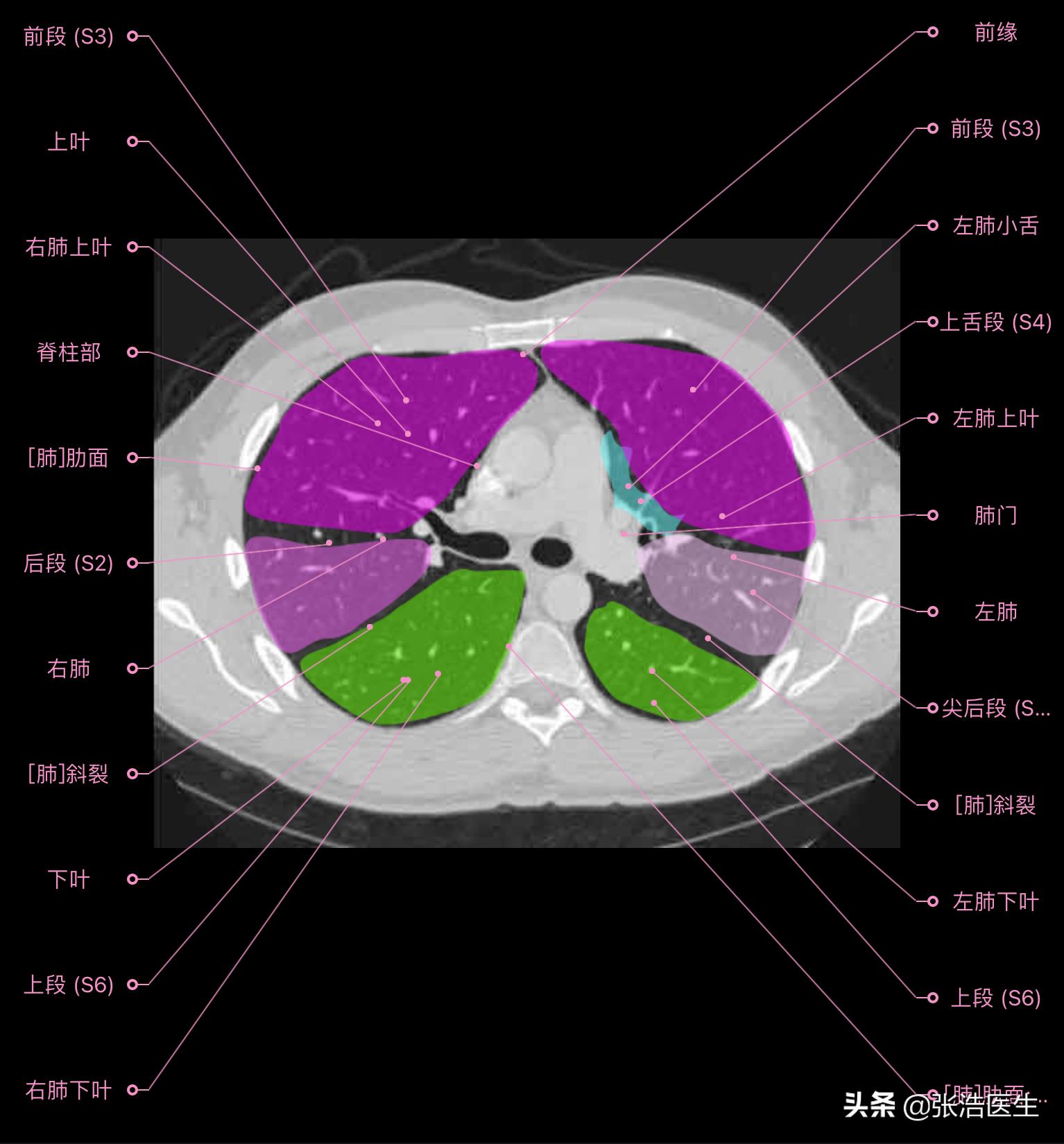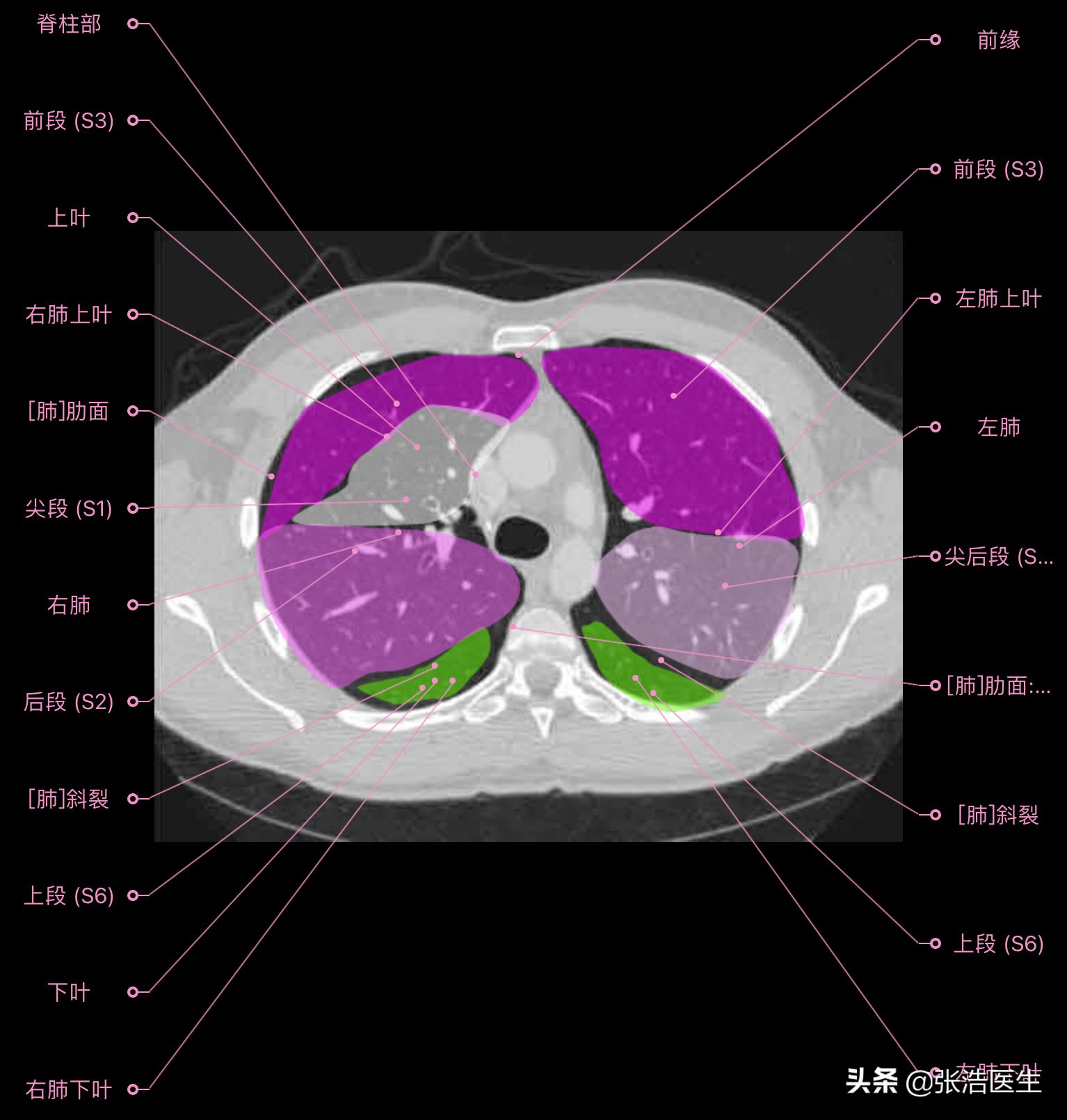 肺部CT高清解剖图谱,附带详细标注
