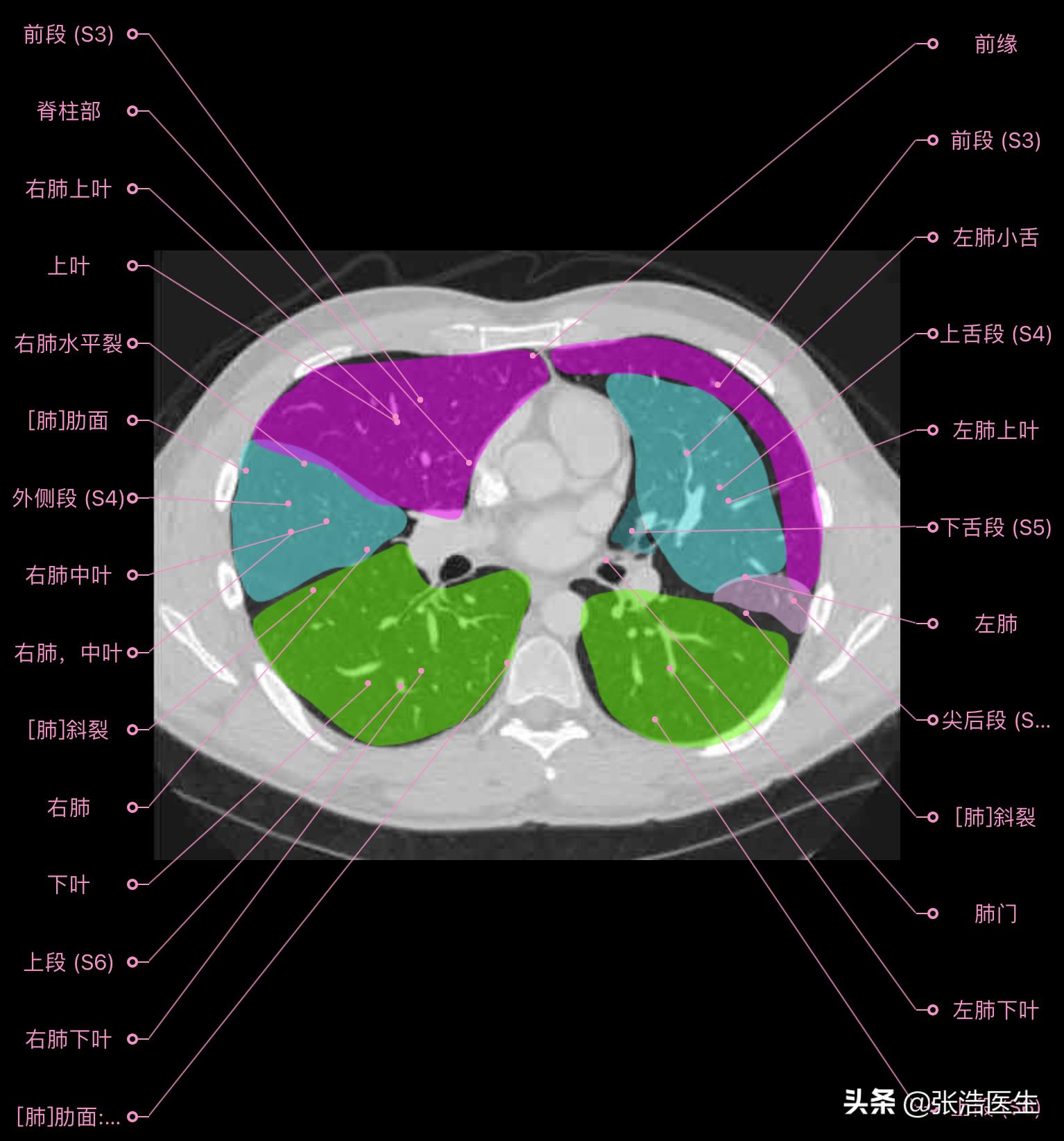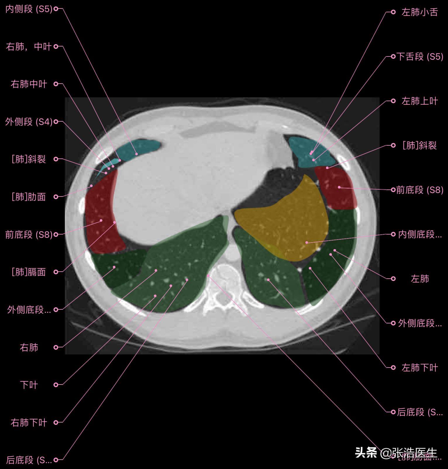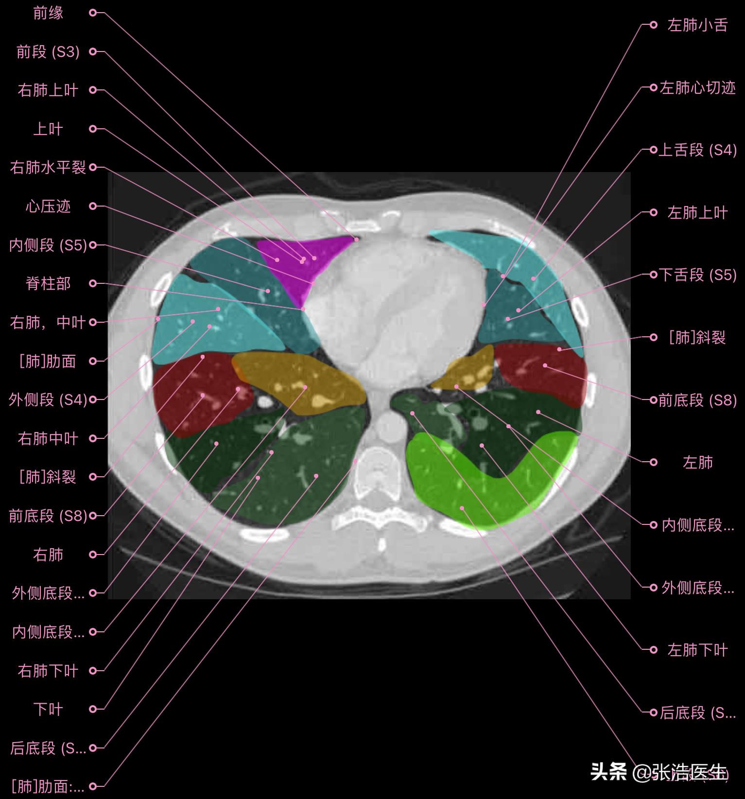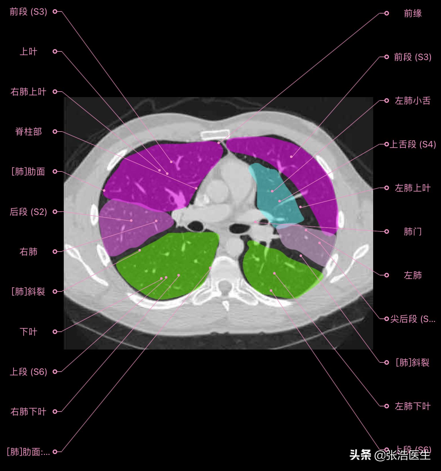 肺部CT高清解剖图谱,附带详细标注