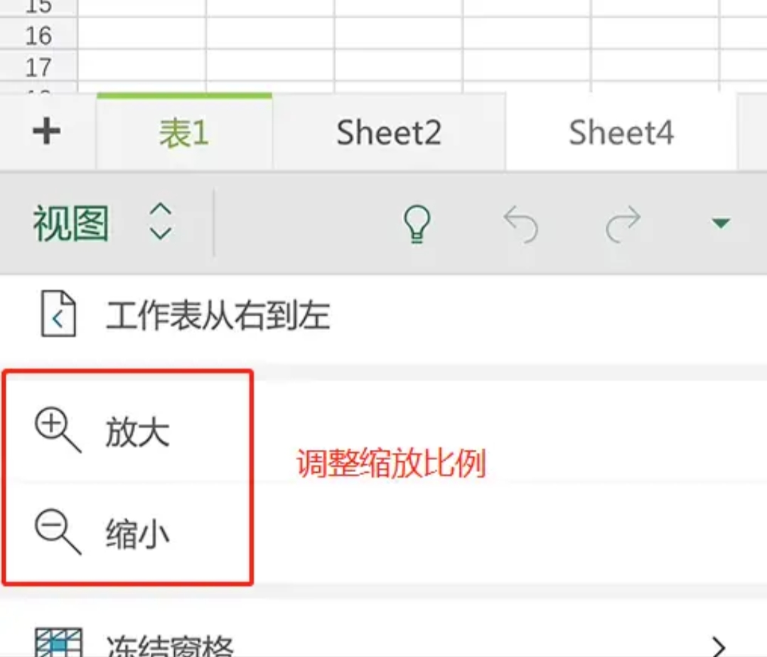 Excel也可以通过【视图】选项卡下更改放大/缩小比例即可