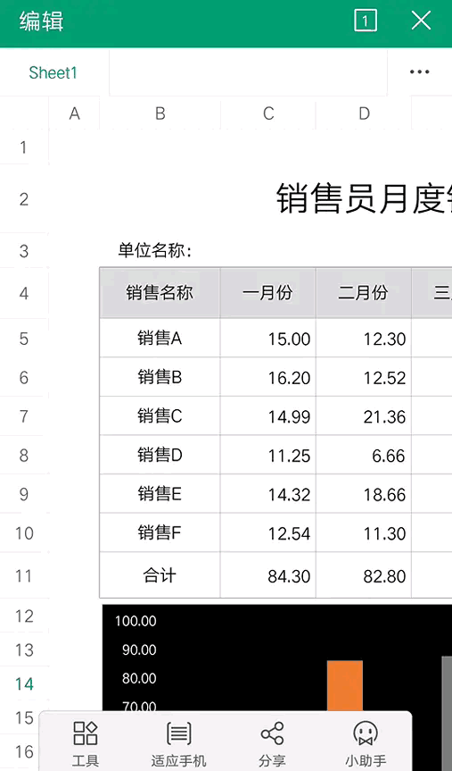 下面将为大家展示的是在手机上如何操作工作表:新建、重命名、隐藏、保存等基本功能!在打开后都是默认阅读模式的,只有点击编辑之后才可以进行任何操作: