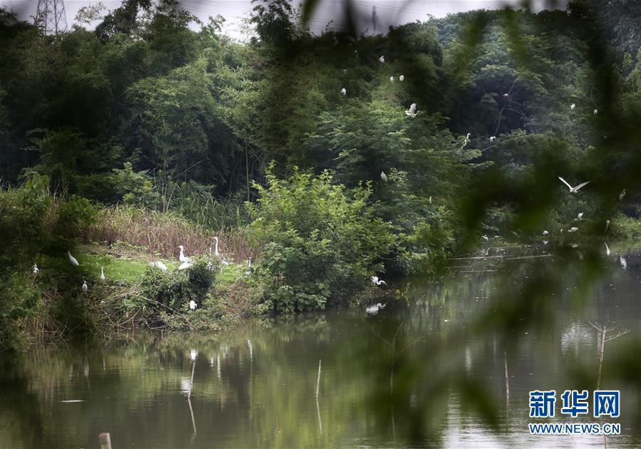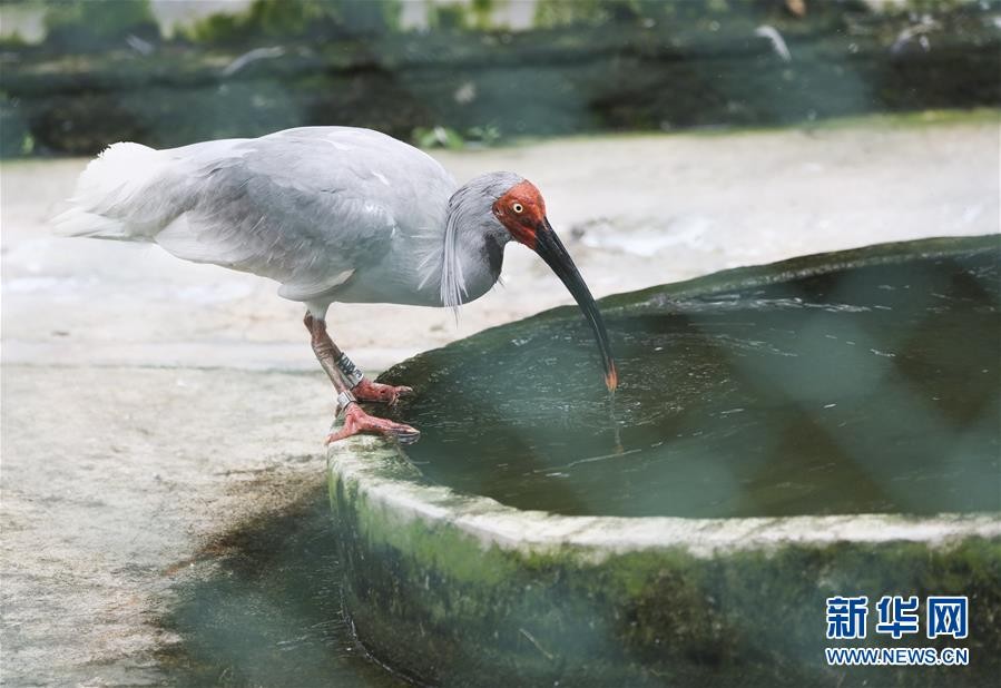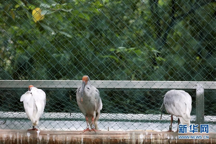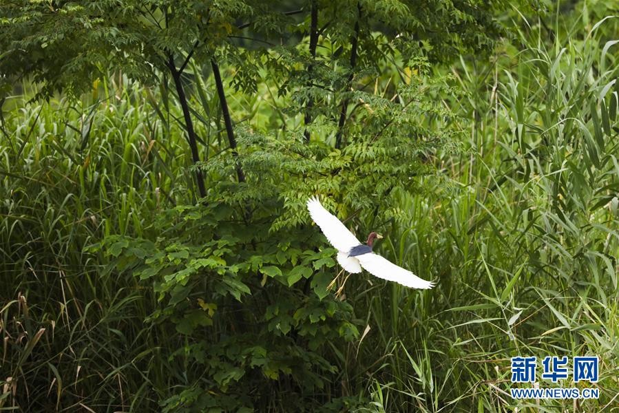 7月2日拍摄的下渚湖区内人工饲养的朱鹮。朱鹮有“东方宝石”之称,是全球濒危鸟类。目前下渚湖有朱鹮200余只。 新华社记者 兰红光 摄