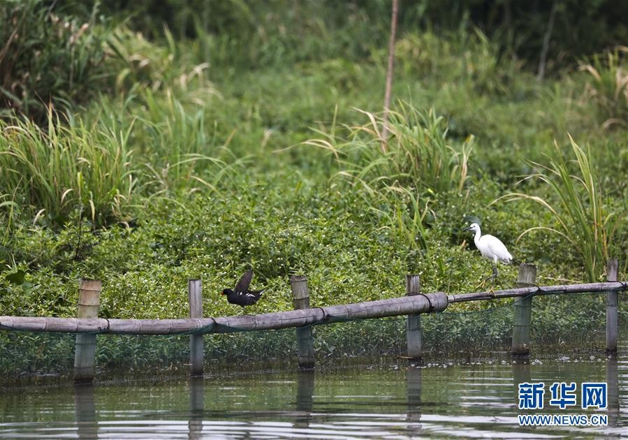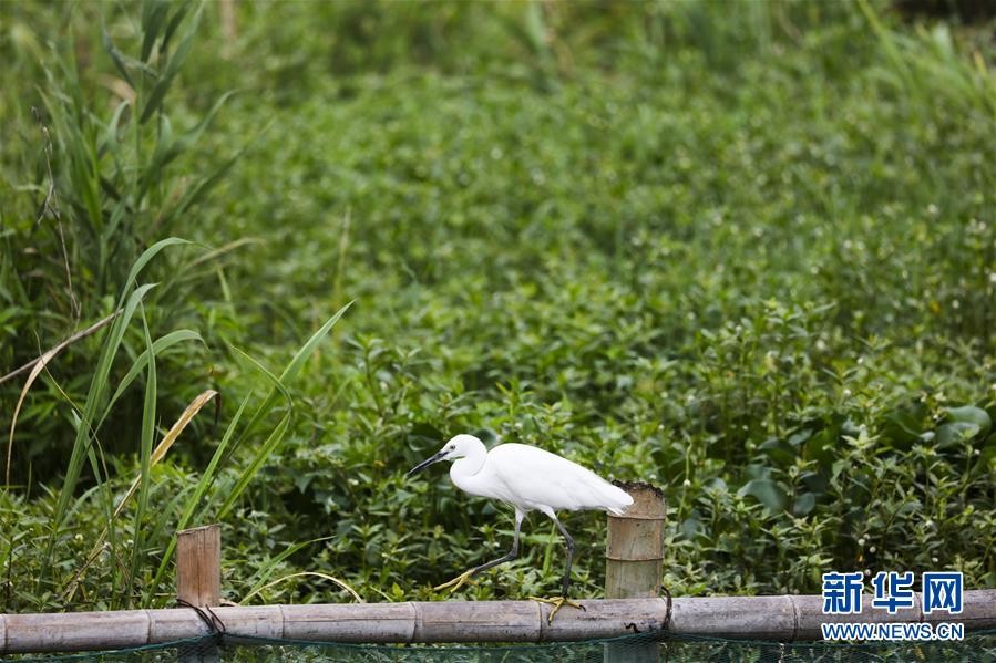 7月2日拍摄的白鹭立于独木之上。 新华社记者 兰红光 摄