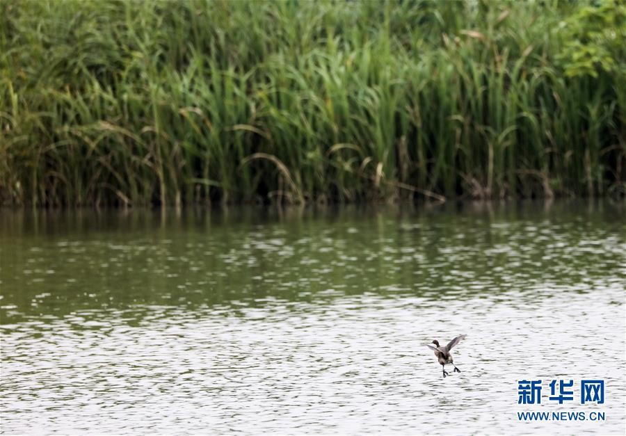 7月2日,野鸭在下渚湖湖面上飞翔。 新华社记者 兰红光 摄