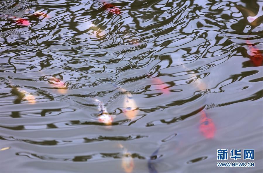 下渚湖中的鱼儿纷纷向游客聚拢(7月2日摄)。 新华社记者 兰红光 摄