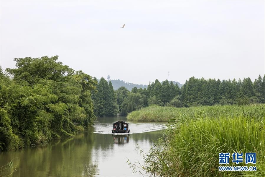 7月2日,游船行驶在下渚湖湖面上。 新华社记者 兰红光 摄