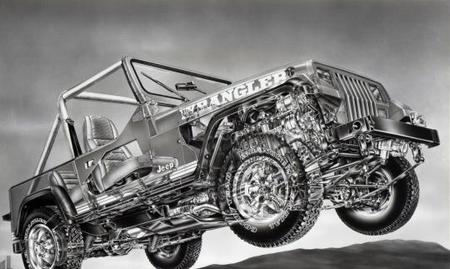牧马人的前后桥也都是独立的,而且他4个轮根本不在车里。