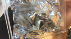 一个简单的对比:一张铝箔涂上了梵塔黑涂料后,看上去是这样的。