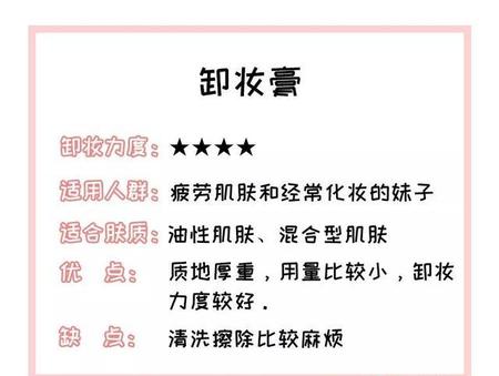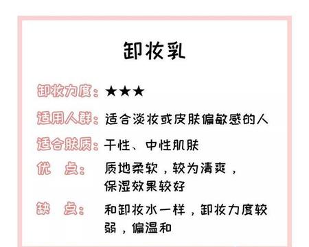 常见的卸妆产品就有卸妆乳、水、油、膏……下面我们就来具体说一说这些卸妆产品的特点▼