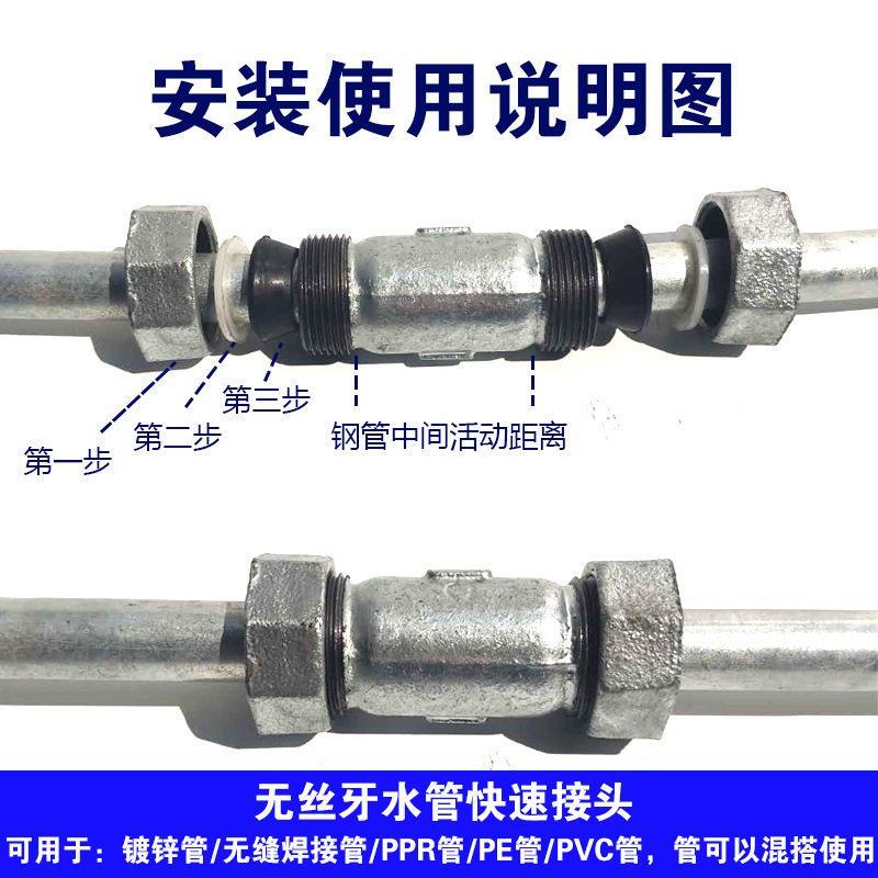 要是镀锌钢管倒是有点麻烦,要是在地下那就更麻烦了,开地面就不说了,挖开地面,量下管子直径,一般都是直径换算成英寸,然后1/2寸或者1寸管等,再去买对应的快速接头,然后必须在断裂位置必须要锯开与快速接头稍短点长度,然后将接头塞进去,如下图再拧紧螺母即可。
