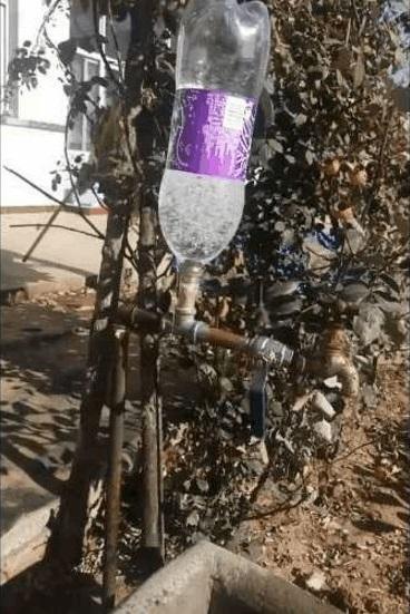 有些地区的朋友会在水龙头后面加个可乐瓶,据说防冻效果非常不错,还有的朋友甚至给加上两个可乐瓶,据说防冻效果更好: