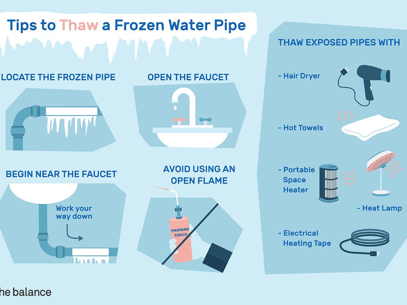 水管被冻住,办法还有什么?不就是加热化冻么,这个道理人人都知道,当然加热方式不一样,效果也不一样,搞不好还把水管搞坏。