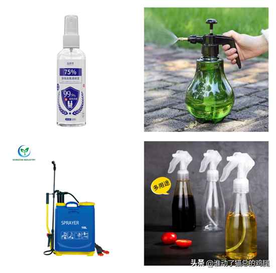日常生活中的常见产品:喷油瓶、打气水壶、农田打药器、酒精喷雾瓶。