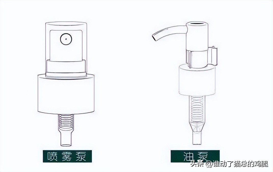 左侧为喷雾泵工作原理,右侧为油泵工作原理,两者本质原理相同