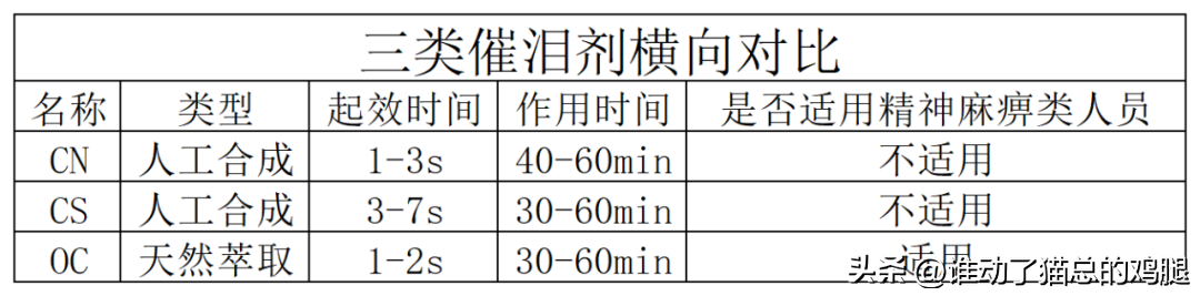 1.CS型会刺激人体面部泪腺和鼻腔黏膜来使人不断流泪、流涕。