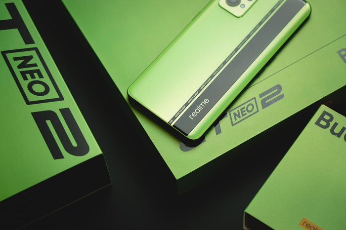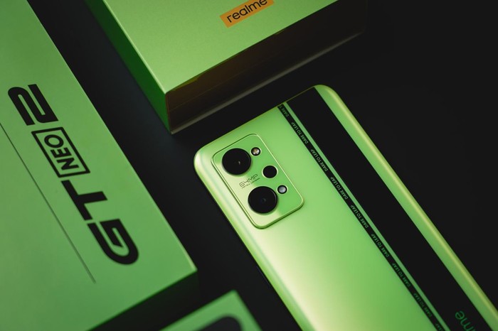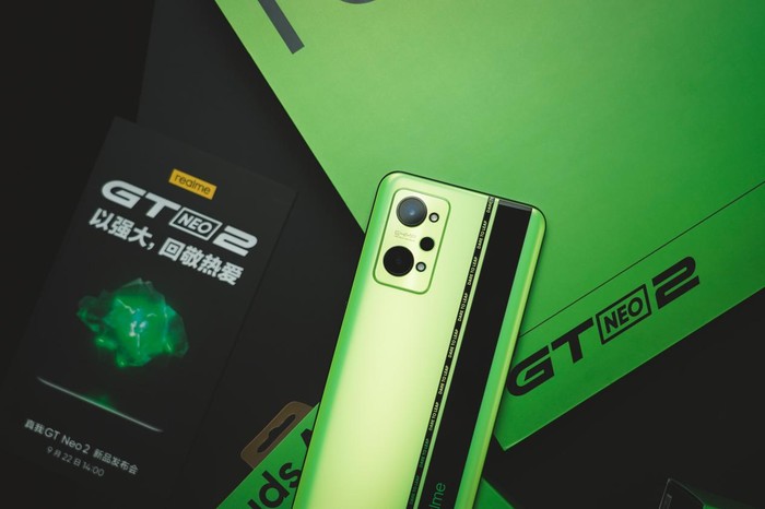 采用6.62英寸最新三星E4屏,支持120Hz刷新率,最高触控报点率600Hz,100% P3广色域,2400x1080FHD+分辨率,屏占比高达92.60%,最高局部峰值亮度1300nit,PPI为397,采用GG5大猩猩5代玻璃,同时支持DC调光,E4屏幕相比上代产品,能够节省15%电量且视觉效果出色。真我GT Neo2是行业唯一一台使用高饱和度荧光绿颜色的手机,采用了多层纳米光学镀膜工艺,使整体的后壳色彩饱和度对比普通工艺提升50%,鲜艳的荧光绿与纯黑色碰撞,强烈而和谐。