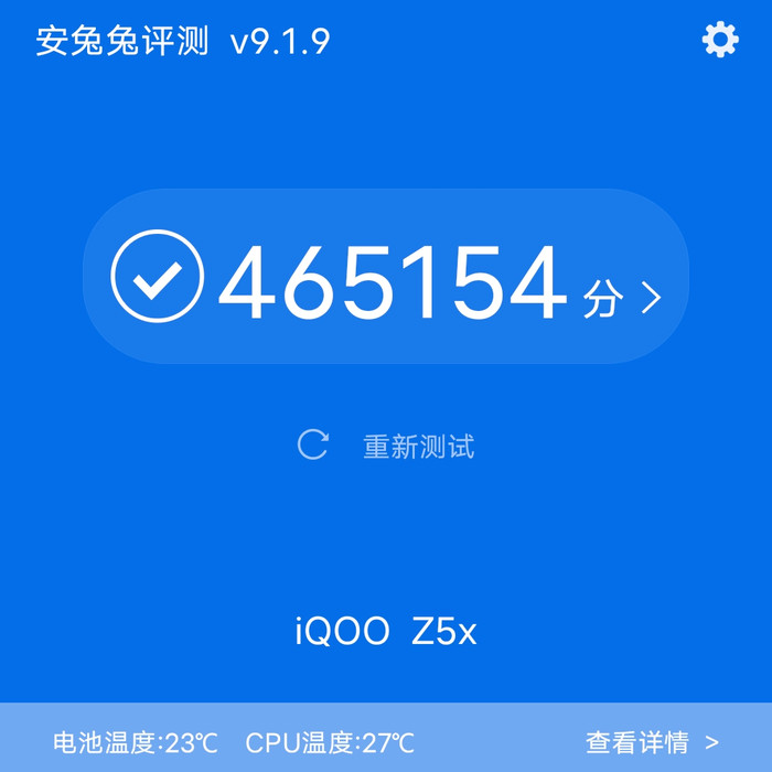 跑分上,iQOO Z5x在安兔兔拿到了接近50万的高分。在GeekBench 5中也取得了单核716分,多核2222分的好成绩,并且在3DMark上的Wild Life Stress Test环节,也拿到了99.1%的稳定性。这些出色的分数表明iQOO Z5x的性能处于千元机市场的高峰。
