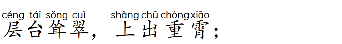合起来品味这几句:层台耸翠,上出重霄;飞阁流丹,下临无地。