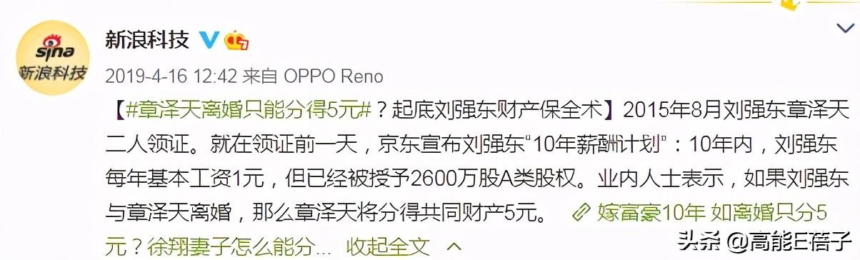 此外,也有网友认为章泽天不敢离婚,毕竟之前就有传闻刘强东早就把自己所在公司的年工资,改为1元,就是明摆着为未来离婚做打算,如果不提前做这些手脚,两人一旦离婚,刘强东很可能会失去一半身价,这可是得不偿失。