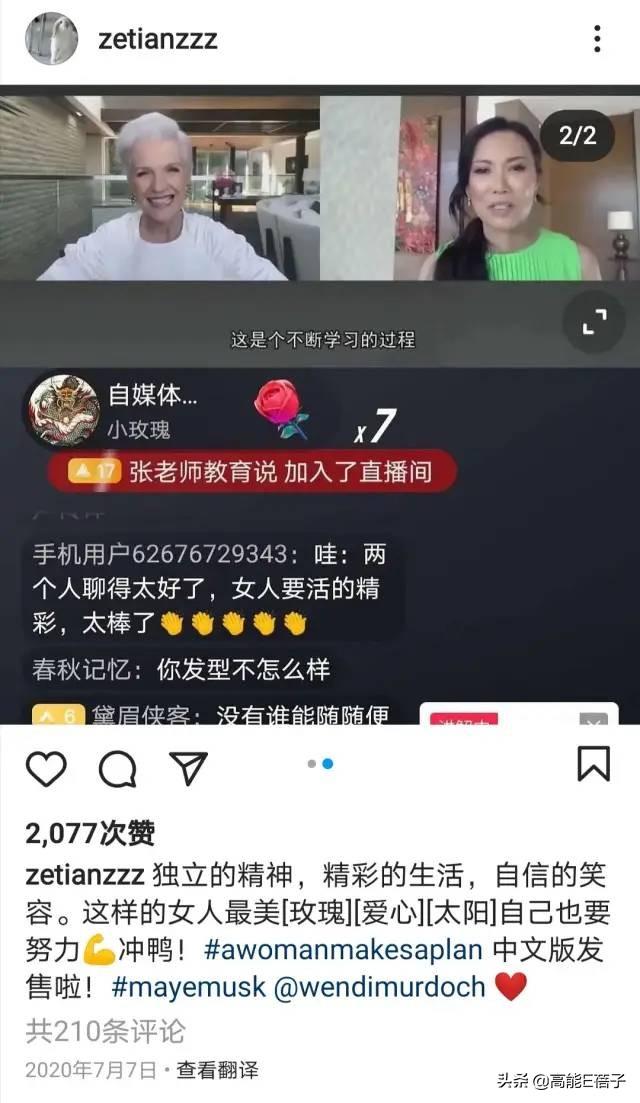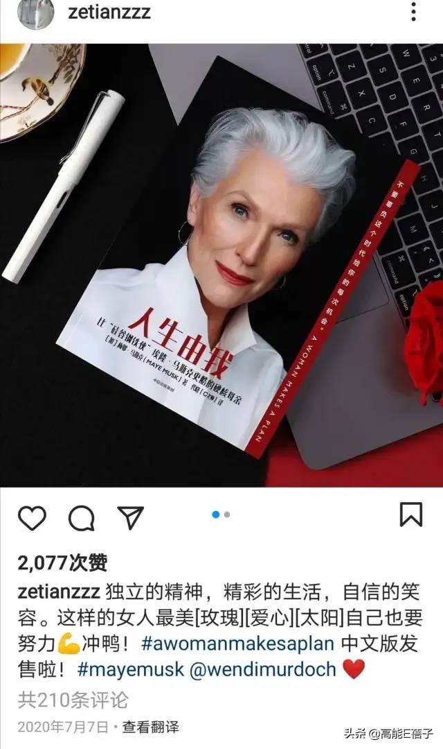而另一位她喜欢的女性,是特斯拉创始人马斯克的母亲。划重点,她也是一名离异的单身母亲。