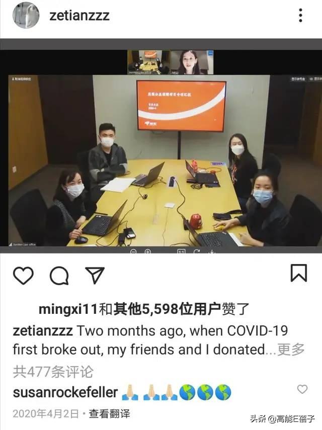 去年4月,她晒出了京东捐款的po文,在里面只出现了她一人。