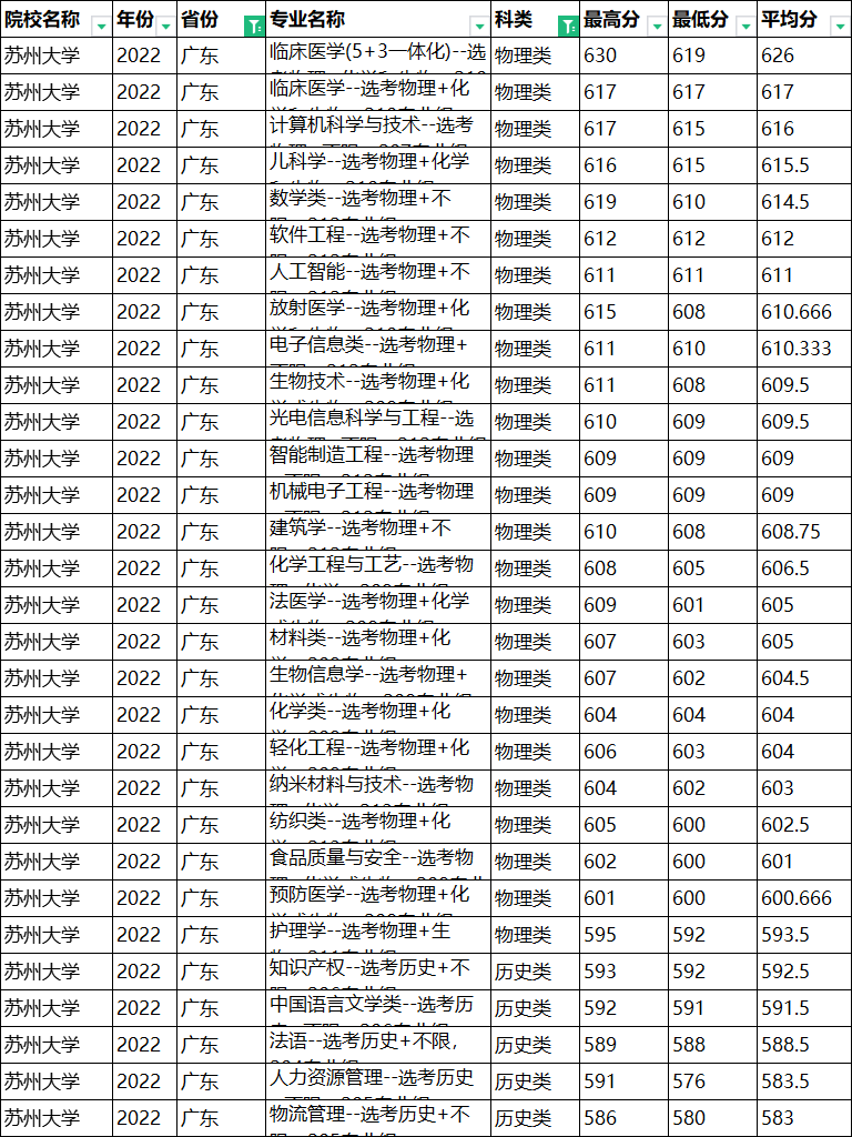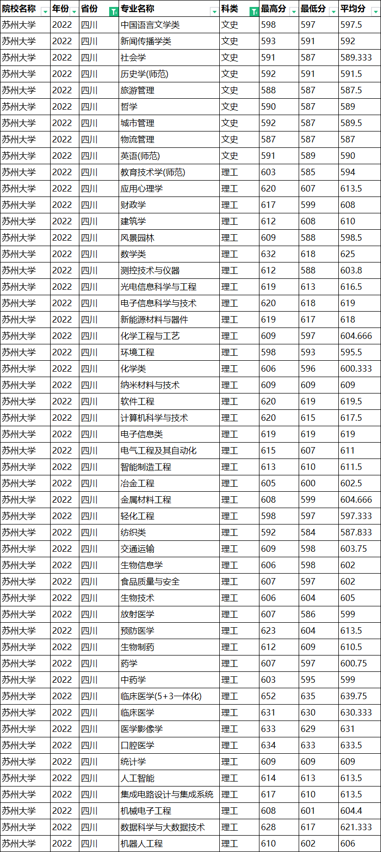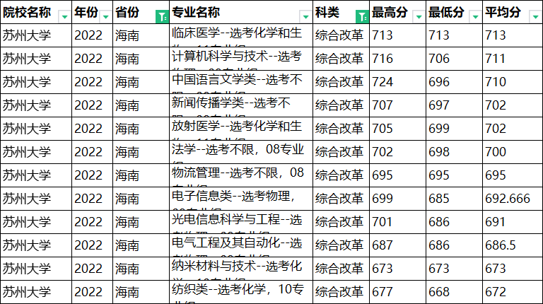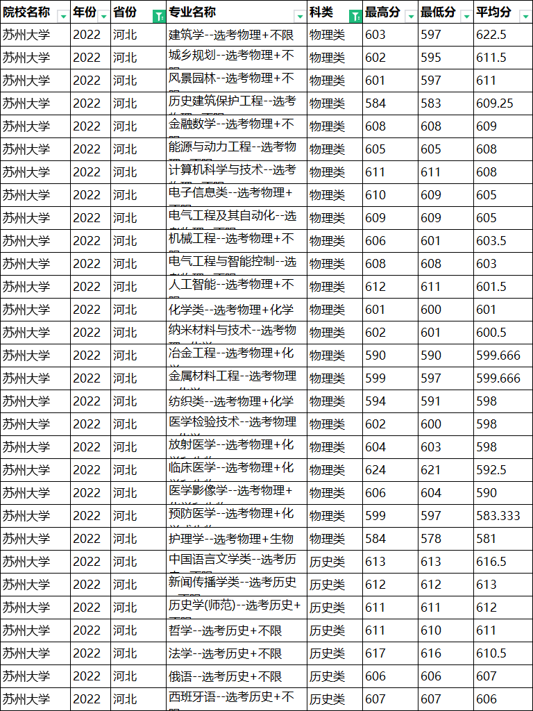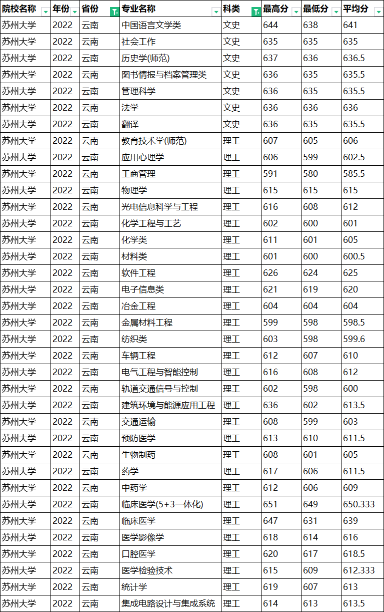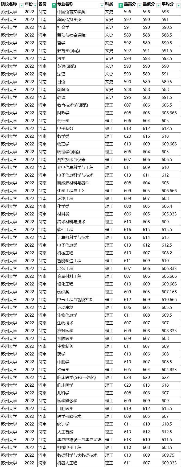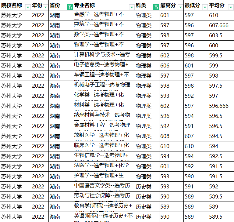 苏州大学在湖南2022年文理招生专业录取分数线: