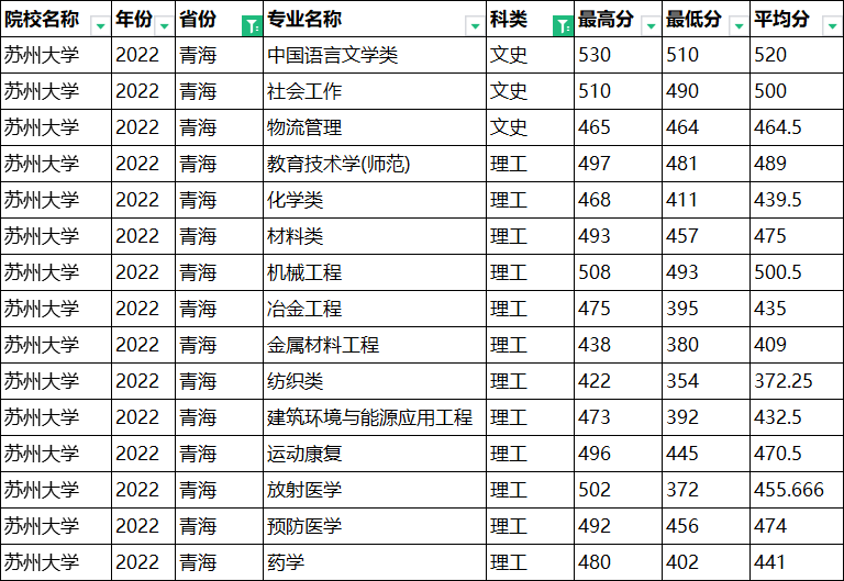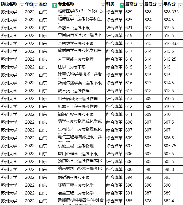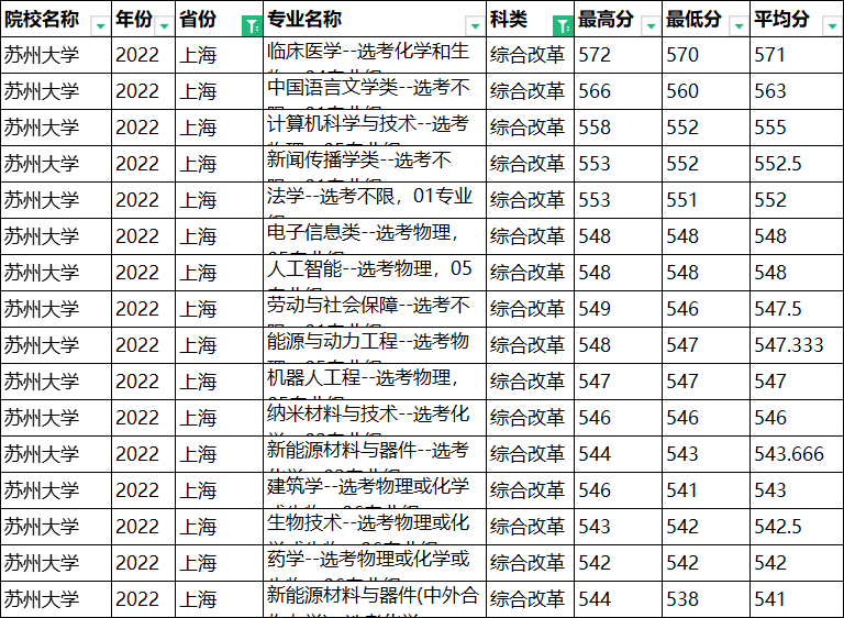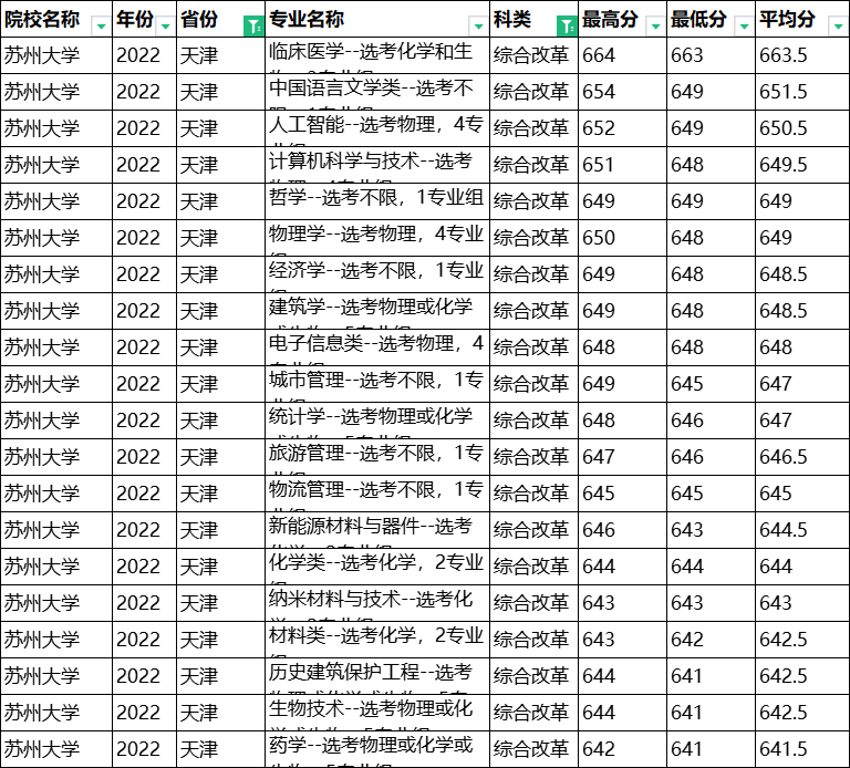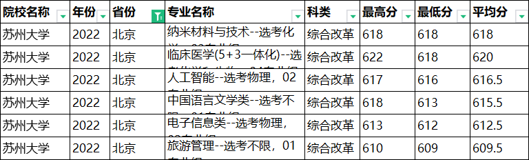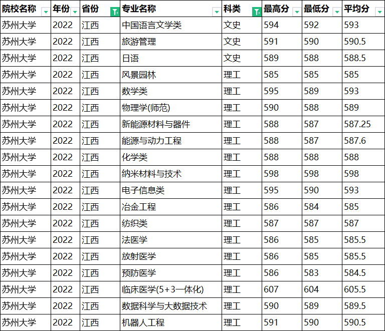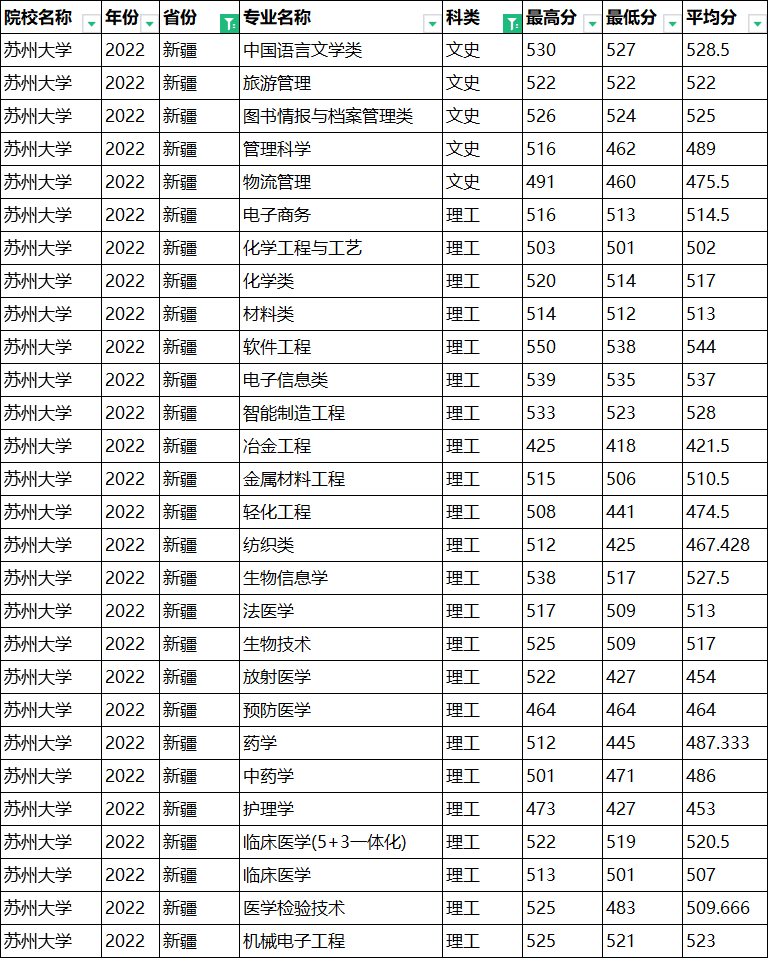 苏州大学在新疆2022年文理招生专业录取分数线: