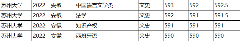 苏州大学在安徽2022年文理招生专业录取分数线: