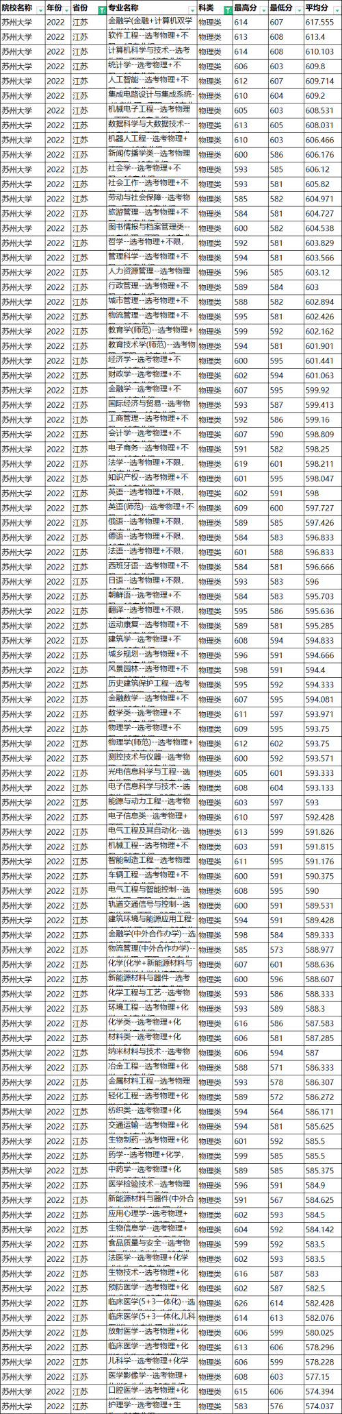 苏州大学在江苏2022年文理招生专业录取分数线: