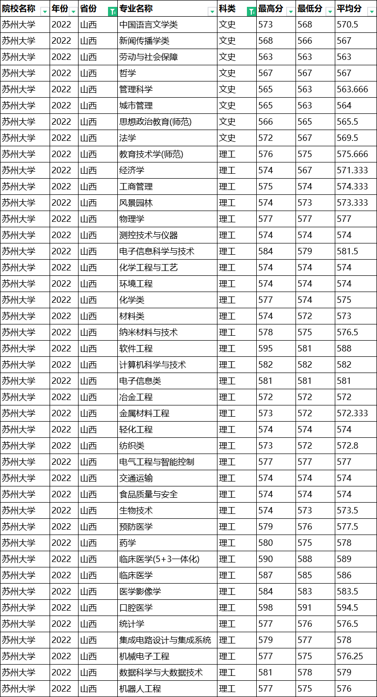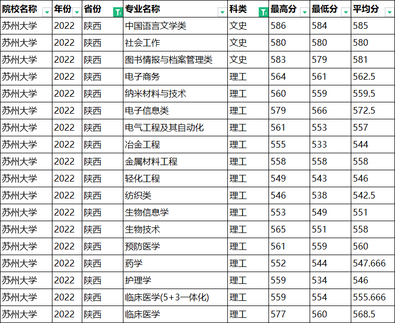 苏州大学在陕西2022年文理招生专业录取分数线: